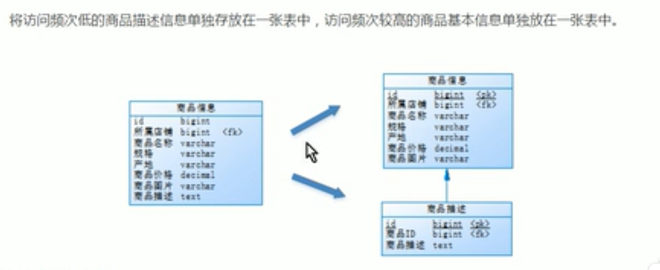案例:将商品信息表按照访问频率分为两个表,商品信息和商品描述表