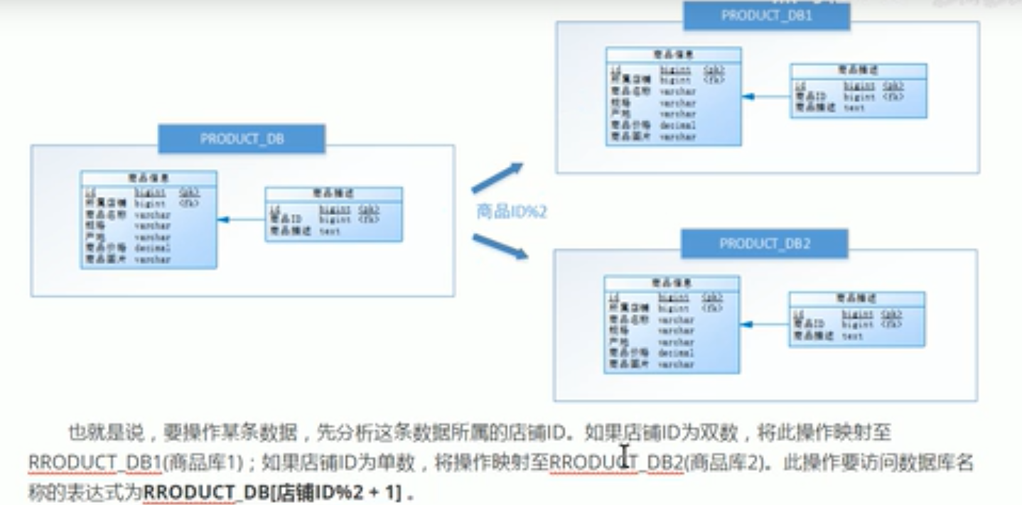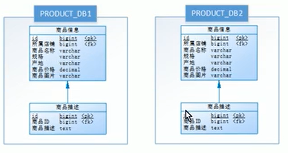 案例:将商品信息表和商品描述表放在商品库,店铺表放在店铺库。