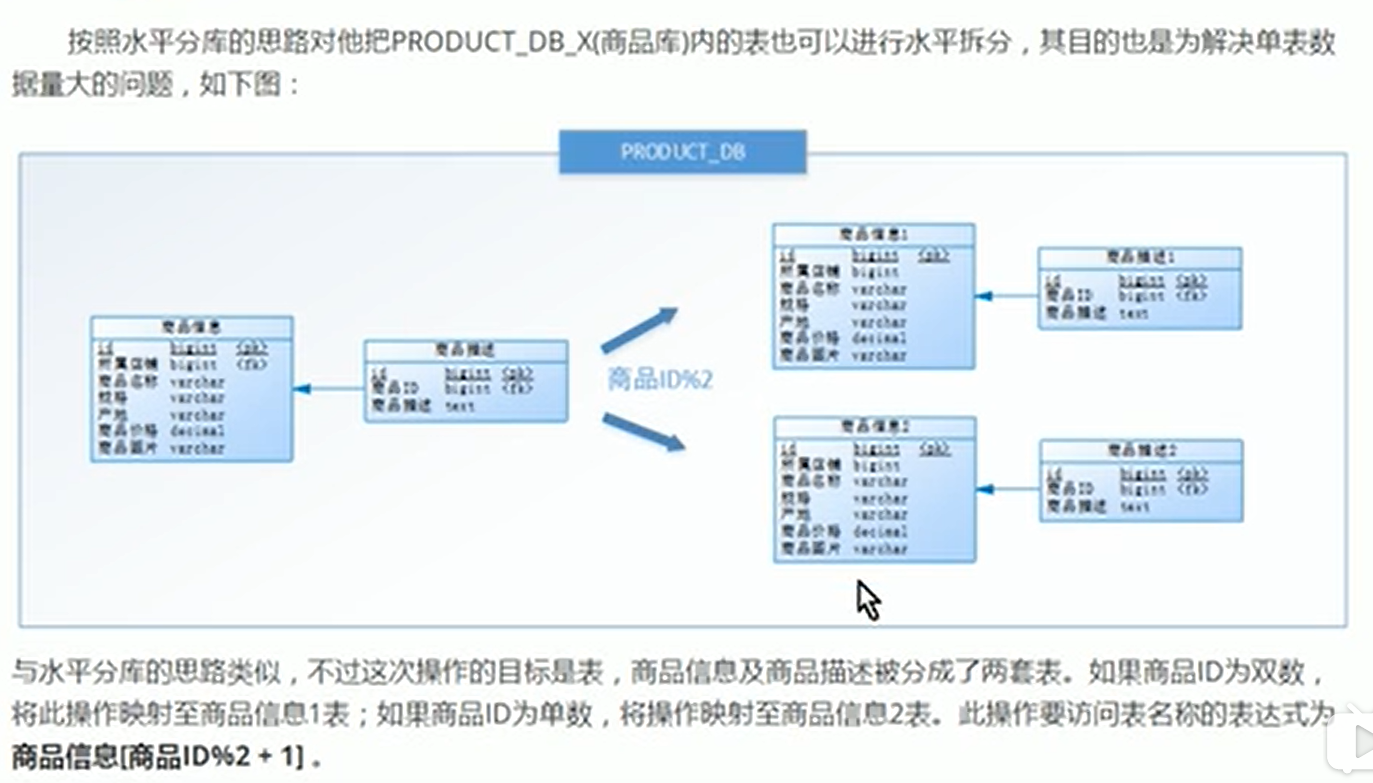 案例: 将同一个库中的商品表的数据分成两个商品表中,可以在一个或多个库中