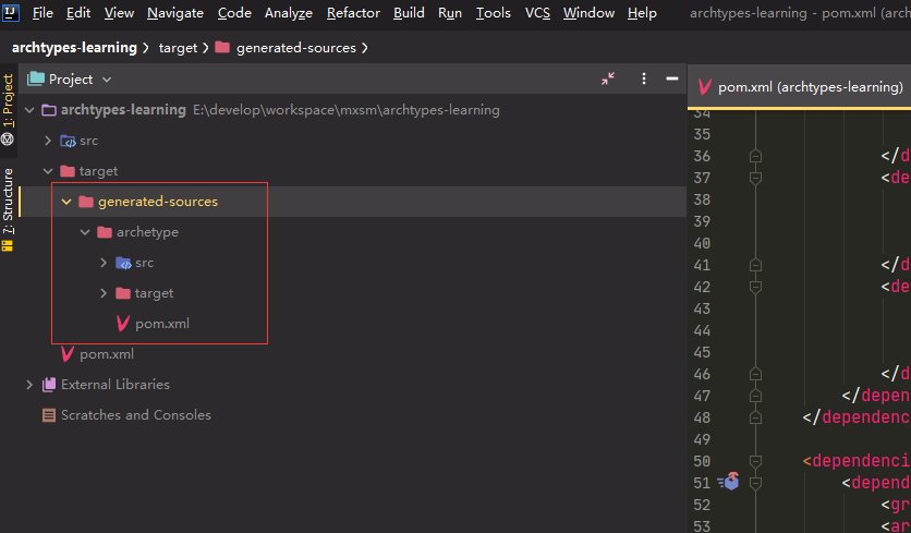 执行完成脚本后。会在 target/generated-sources/archetype 这样一个目录: