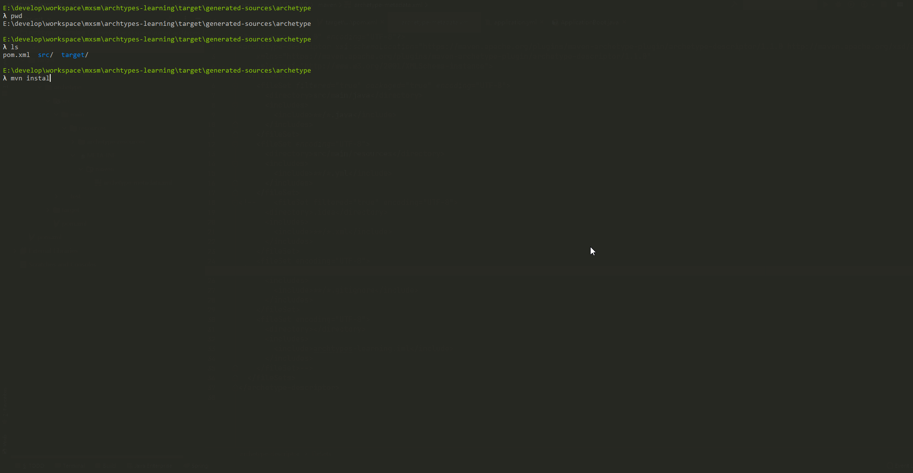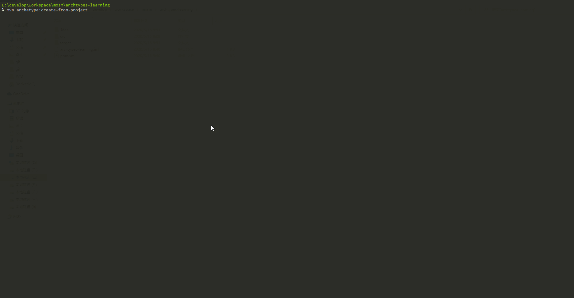 项目创建好了以后去到项目下面执行(E:\develop\workspace\mxsm\archtypes-learning) : mvn archetype:create-from-project