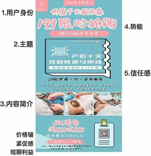 针对产后修复行业来说,项目的客单价普遍较高,所以需要设计一个容易被接受的引流产品去吸引客户;