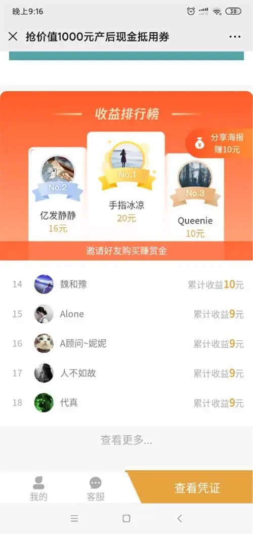 通过排行榜功能,可以营造出一个很好的竞争效果,用户见到排行榜的收益就会勾起分享欲望。本次我们做的活动是排行榜前三名额外可以获得我们的价值999元的护肤套装。