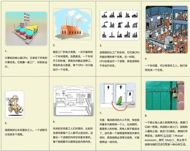 借用一个生动的比喻来说,进程就像是一个有边界的生产厂家,而线程就像是厂间内的一个个员工,可以自己做自己的事情,也可以相互配合做同一件事情。