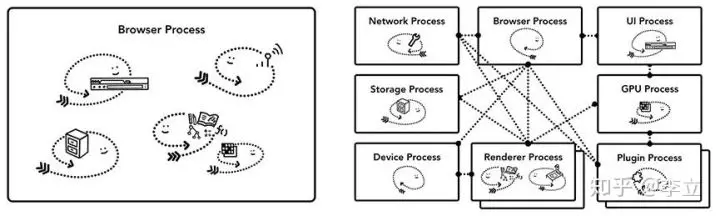 Chrome 采用多进程架构,其顶层存在一个 Browser process 用以协调浏览器的其它进程。