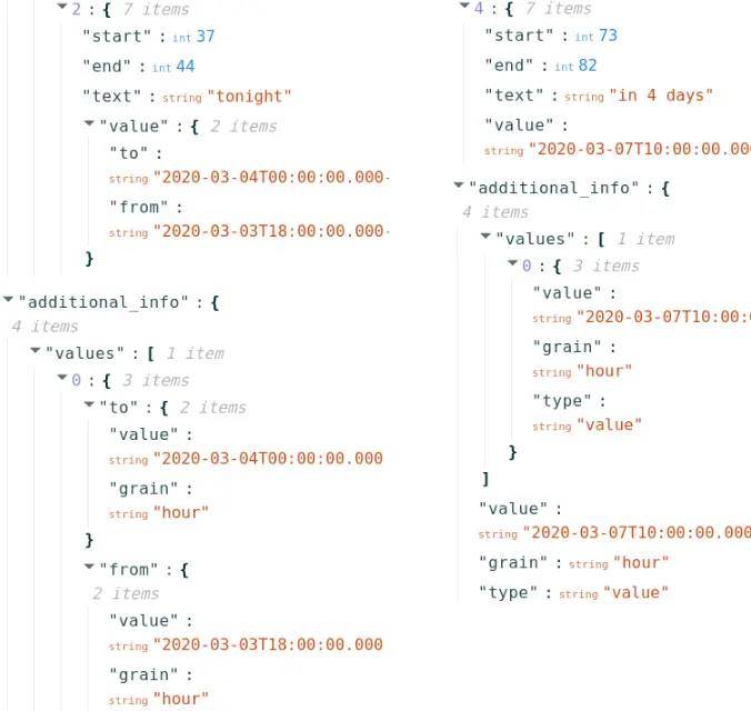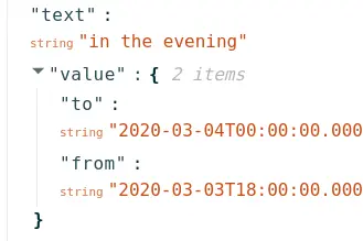 不幸的是,TextSpace也不承认"evening"和"4 days"属于一起,并返回当天的晚上,就像StanfordNLP所做的那样。