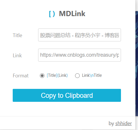 当你想给别人分享一个网站或者文章的时候你直接甩过去一个连接不太友好。但是这款插件 可以建当前网页的标题和链接制作成超链接,只显示标题