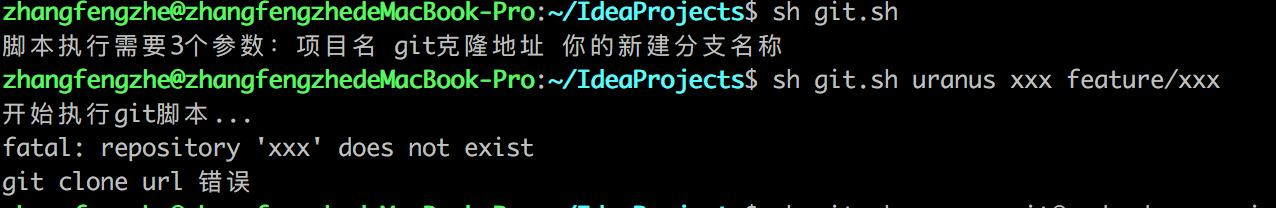 上面脚本的意思,就是想在特定的目录中,进行git clone,并从master新建本地开发分支。