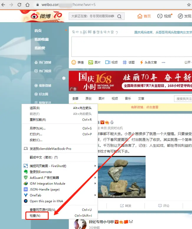 3.2 按F12键或者右键页面空白处—检查,打开开发者工具