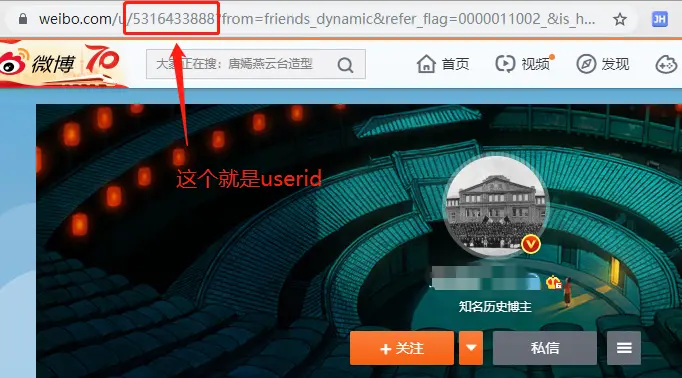 你会发现有一串数字在链接中,这个就是我们要用到的userID, 复制即可。