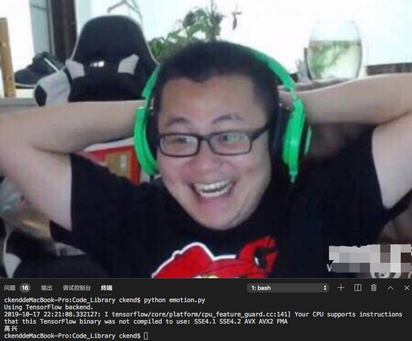 从下面终端输出的结果我们可以看到孙哥现在是高兴的情绪,这个结果应该正确(毕竟孙哥还是表里如一的)。