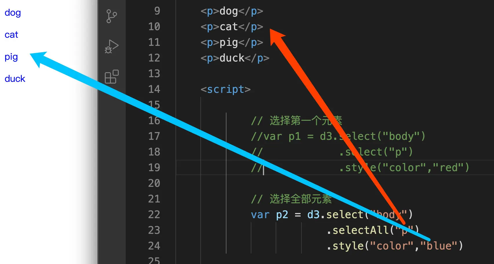 .selectAll("p") // 选择第一个p标签