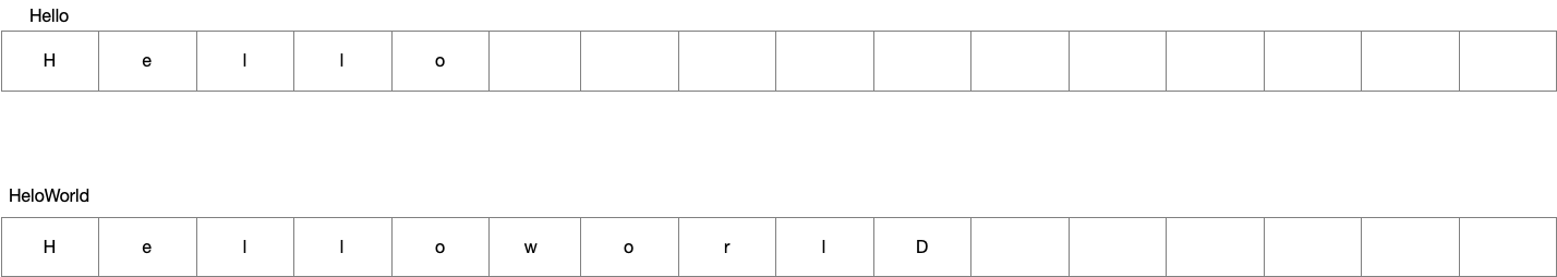 StringBuilder是个字符串的缓冲区,即它是一个容器,容器中可以装很多字符串。并且能够对其中的字符串进行各种操作。它的内部拥有一个数组用来存放字符串内容,进行字符串拼接时,直接在数组中加入新内容。StringBuilder会自动维护数组的扩容。原理如下图所示:(默认16字符空间,超过自动扩充)