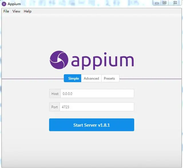 安装appium有两个目的,一是使用python的appium模块需要先打开appium客户端,否则无法使用;二是便于我们查找某个app某个界面的元素,初次打开时如图所示: