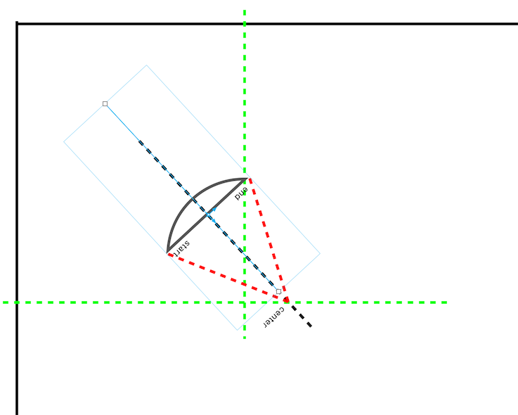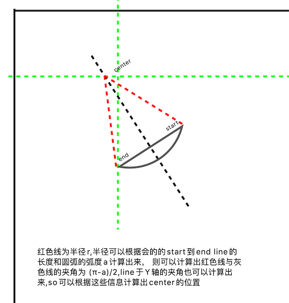 // Note: 保证计算圆心时是从 start 到 end 顺时针 小于 π 的角