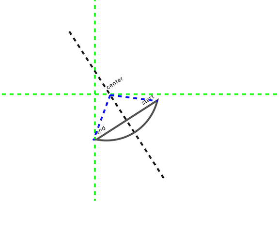 这里附上一个逆时针绘制第一张图中圆心位置的草图,图中已将 start 和 end 对换