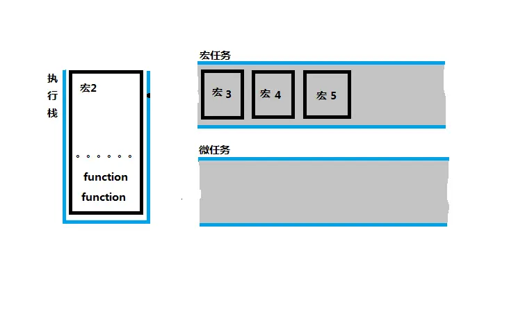 首先在这套机制里有这三个东东。执行栈、宏任务、微任务