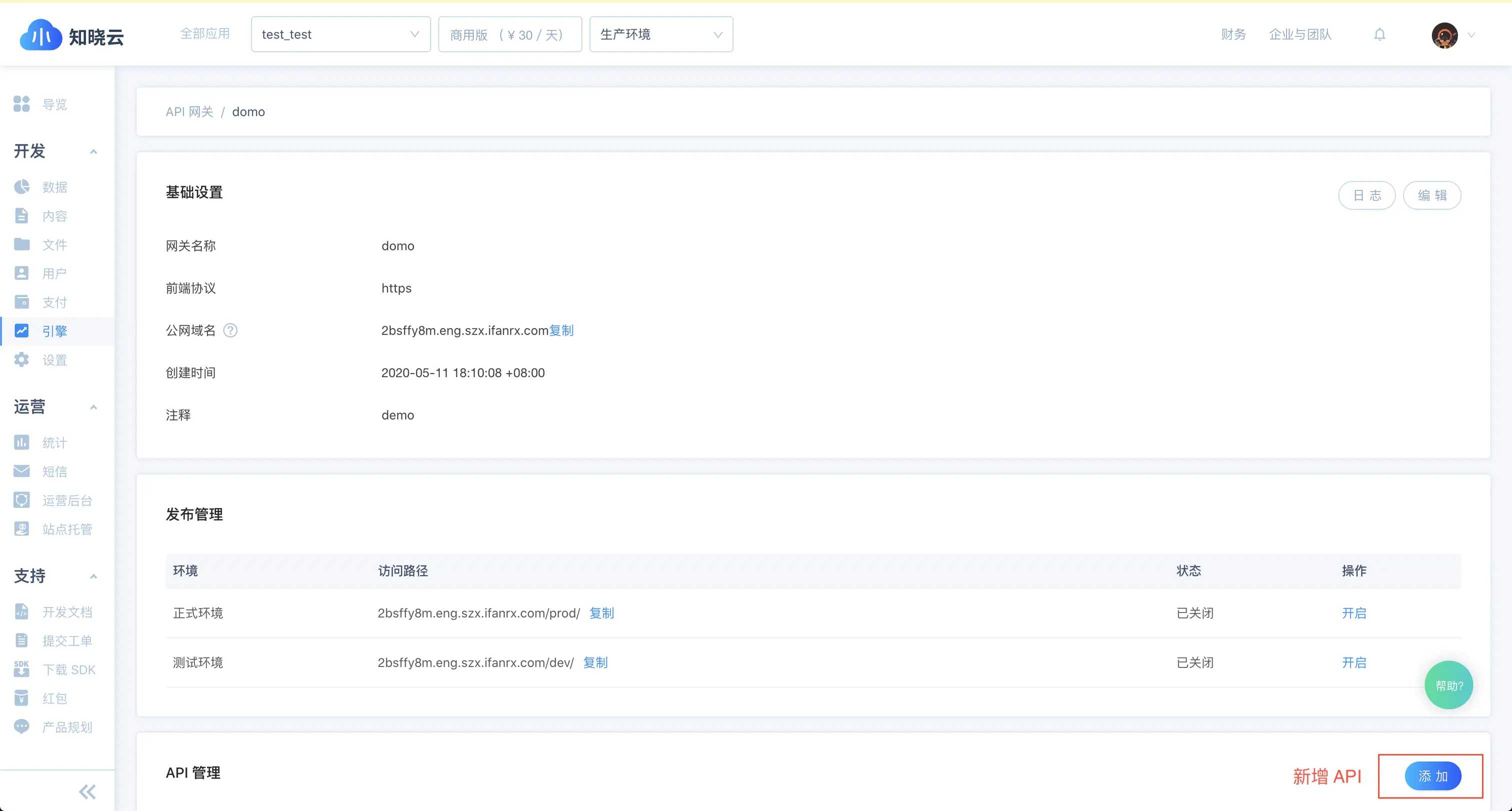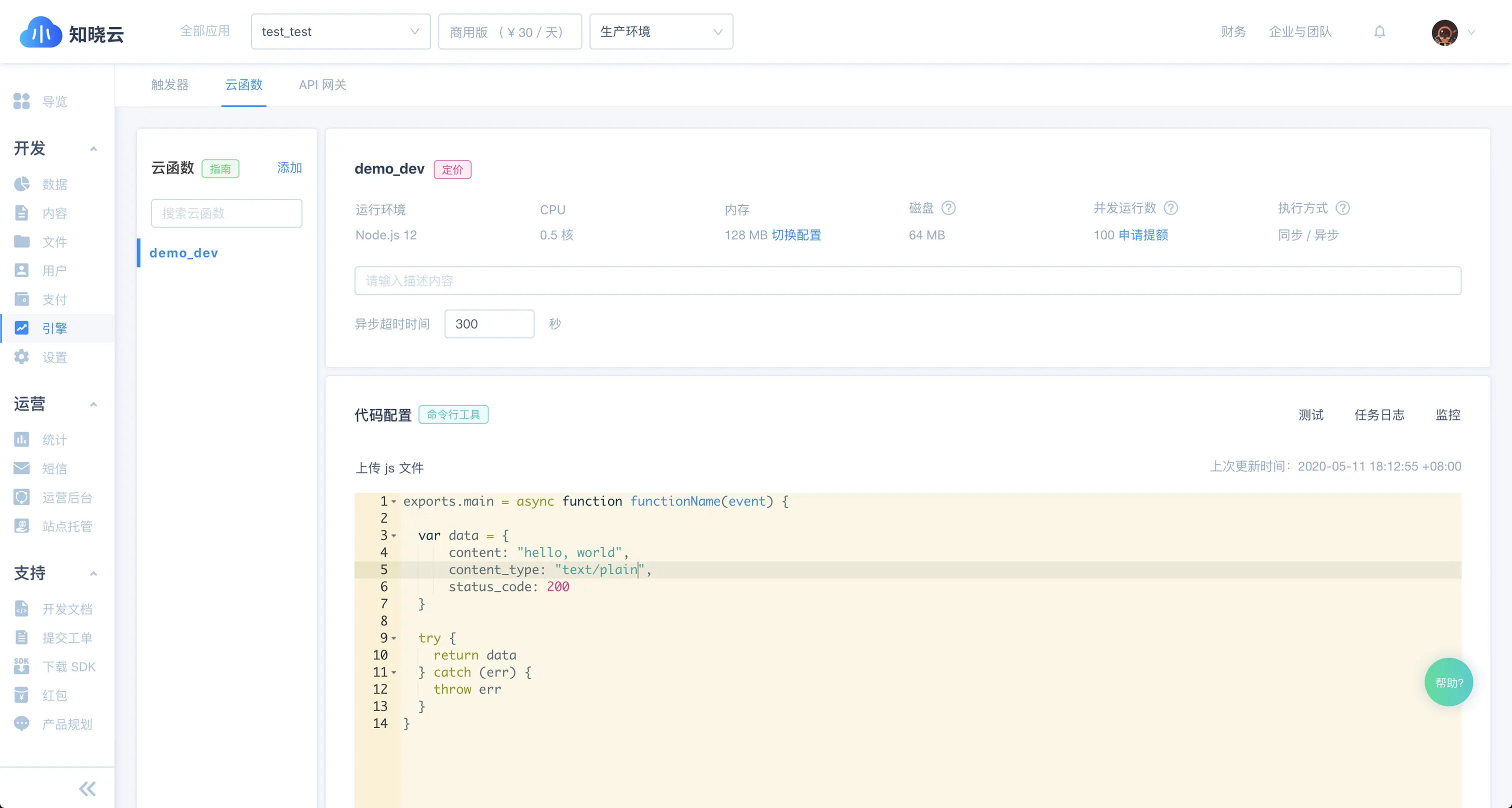 进入「知晓云控制台」,选择「引擎」即可开启使用。