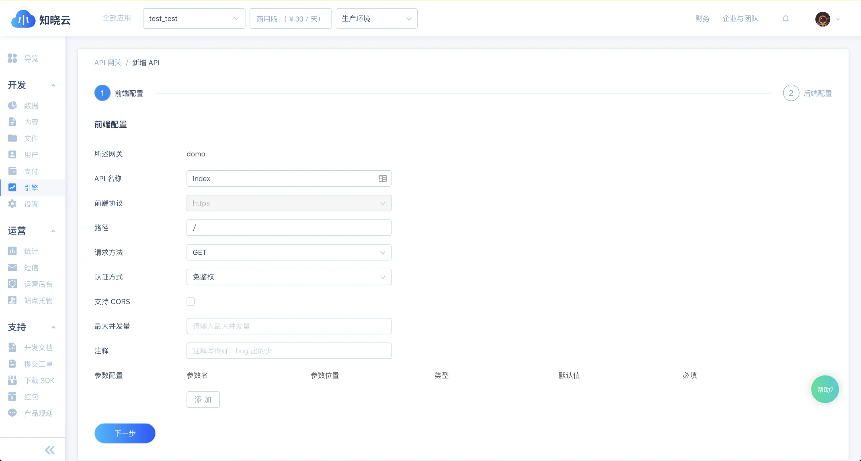 知晓云 API 网关(API Gateway),是 API 发布、管理、运维的全生命周期管理工具。让开发者通过可视化界面配置并生成 API 提供给全平台使用,省掉了繁琐的服务开发及部署环节,五分钟即可完成 API 定制开发。