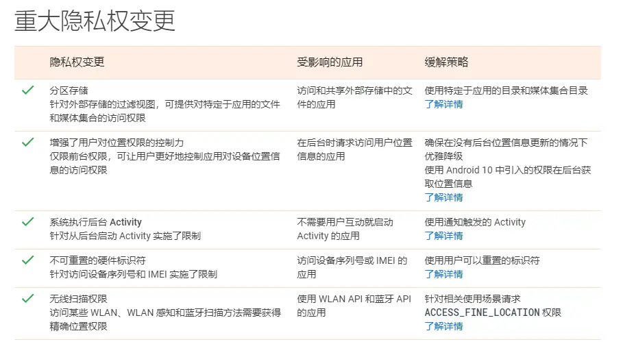 本篇博客仅记录自己为Android10适配做的一些改变,避免以后遗忘花时间百度查找;本文会不定期更新,不会一次性把所有Android10新特性全部适配记录,所以本文有遗漏或有误之处,欢迎大家留言交流。(也可参考Google官方地址)