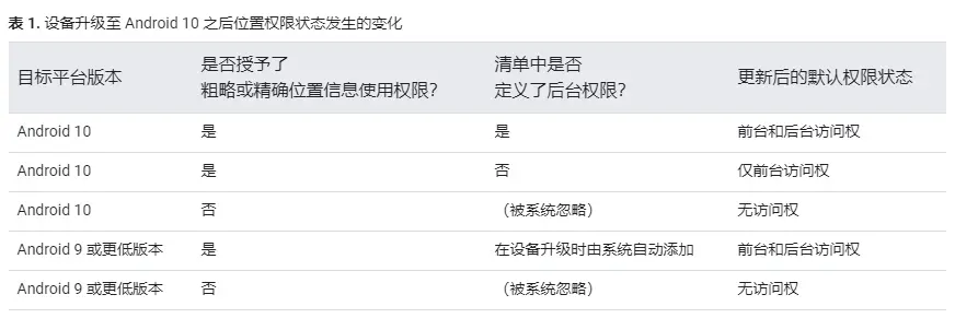 为了控制应用对位置信息的访问权限,Android10新增后台访问定位权限: