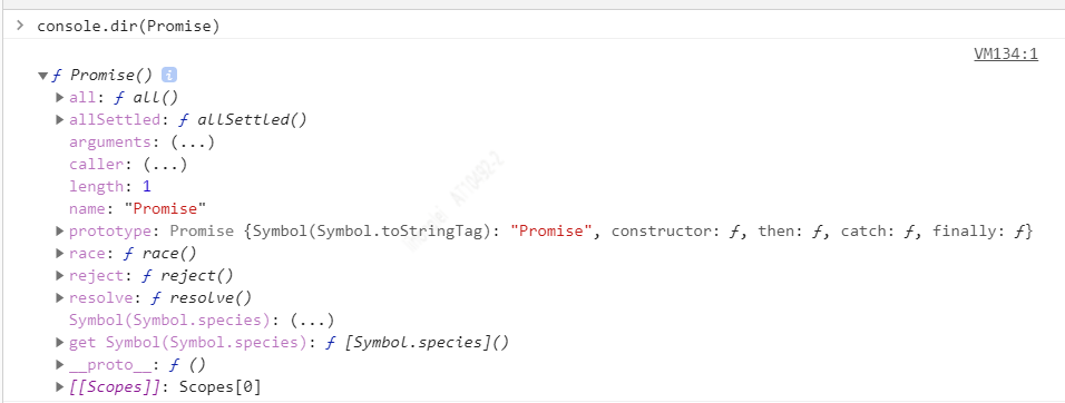 我们在浏览器控制台使用console.dir(Promise), 打印出Promise对象的所有属性和方法。