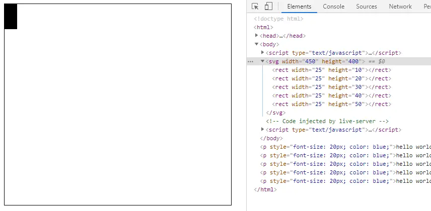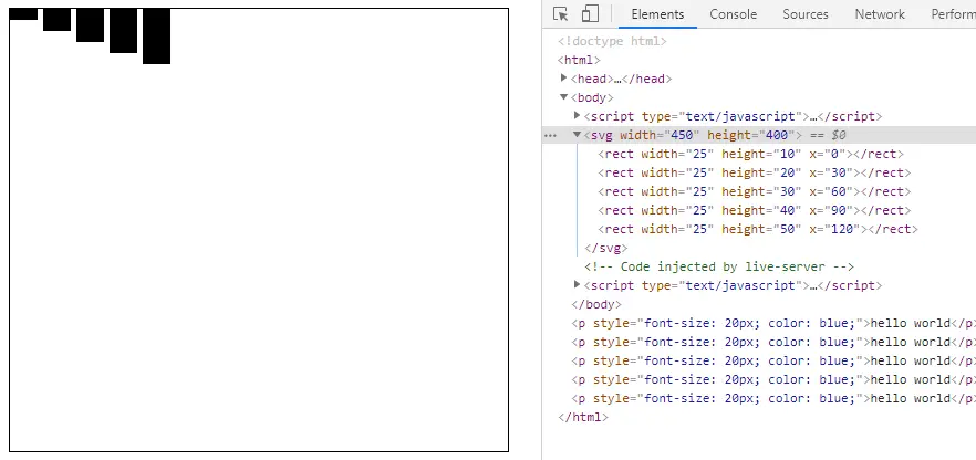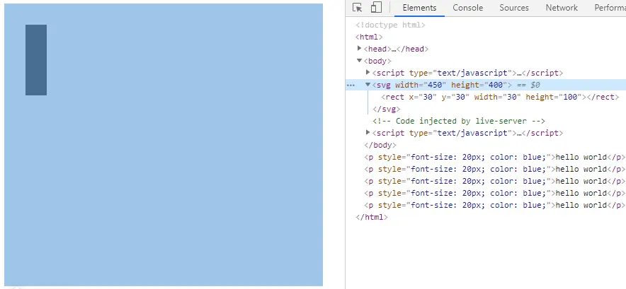 这样就绘制了一个起点在(30, 30),宽30,高30的rect元素: