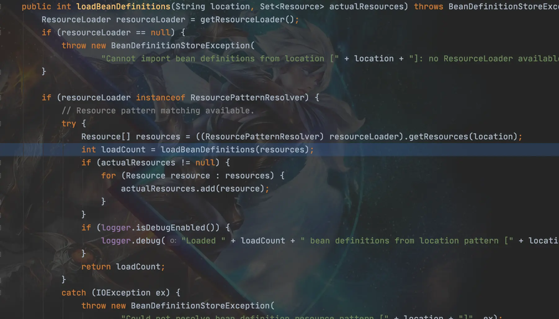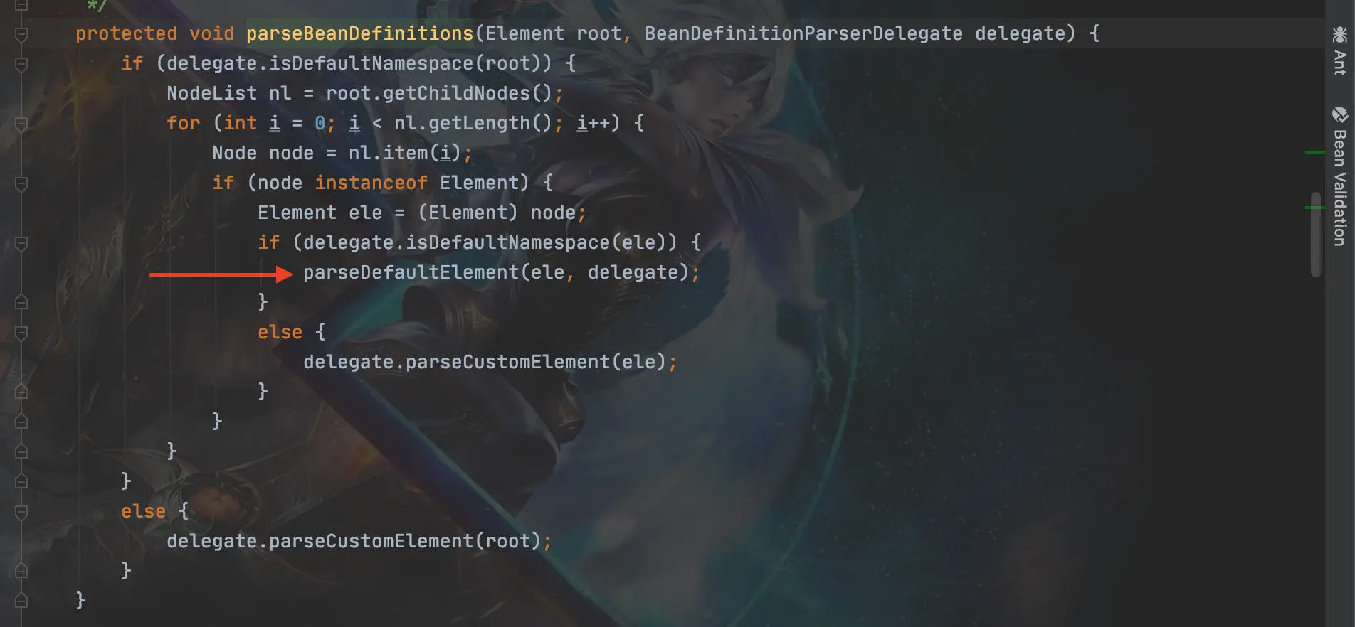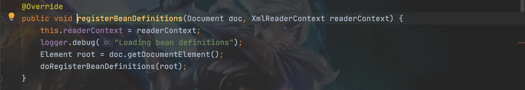 虽然大致流程知道了但还是不知道从哪开始,我们现在DefaultBeanDifinitionDocumentReader类的doRegistryBeanDefinition(Element root)方法中打个断点,然后debug启动我们的SpringMvc项目。