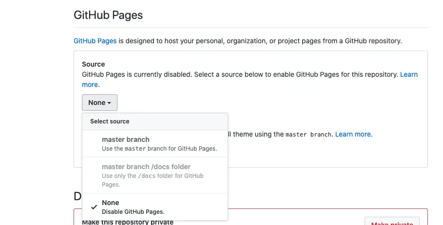 GitHub Pages开启。步骤:进入仓库->点击选项卡中的
