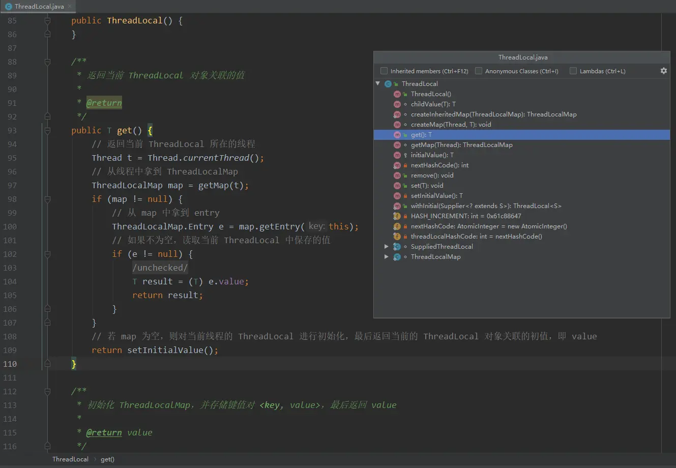 在了解一个类的时候,可以使用 ctrl+F12 来查看类中的成员变量和方法。