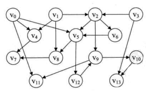 设G = (V,E)是一个具有n个顶点的有向图, V中的顶点序列V1, V2,...., Vn若满足从顶点Vi到Vj又一条路径, 则在顶点序列中顶点Vi必在顶点Vj之前, 这我们称这样的顶点序列为一种拓扑序列.