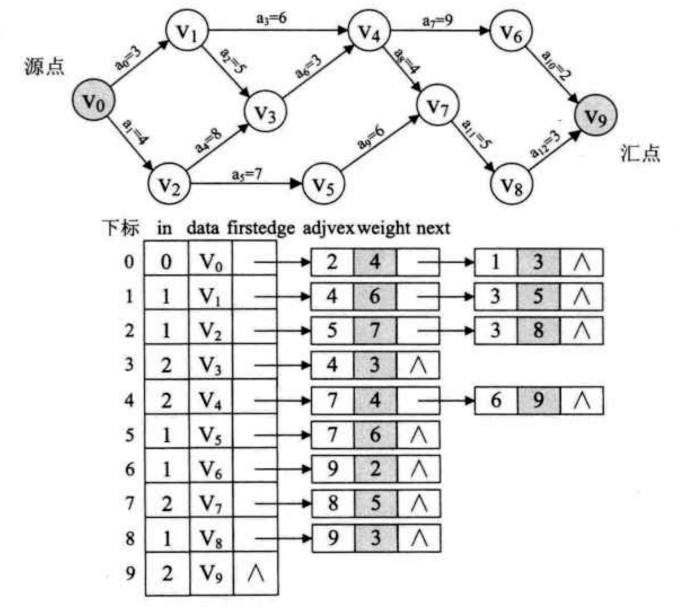 由此可以得出计算顶点即求etv[k]的最早发生时间的公式是: