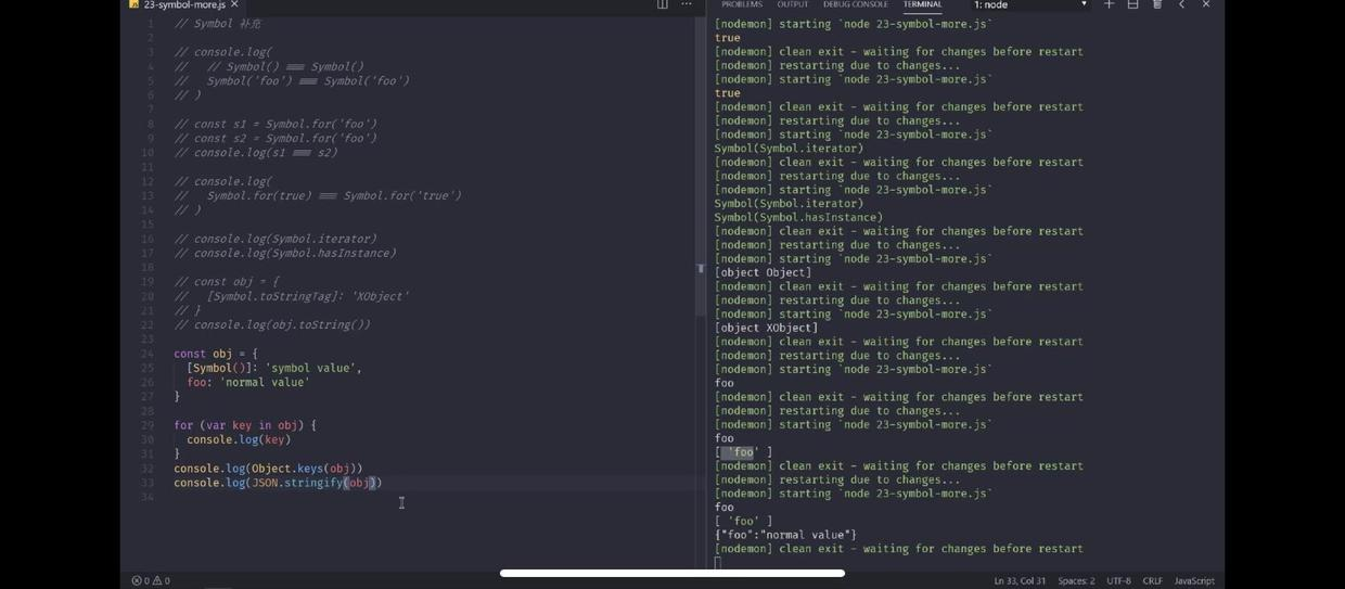 Symbol都是唯一的,就算传入相同的字符串也是唯一,除非用symbol.of,这样才会得到一样的,而且symbol定义的属性,普通方法获取不到,可以看做一个私有属性,要想拿到,可以用getOwnPropertySymbols()