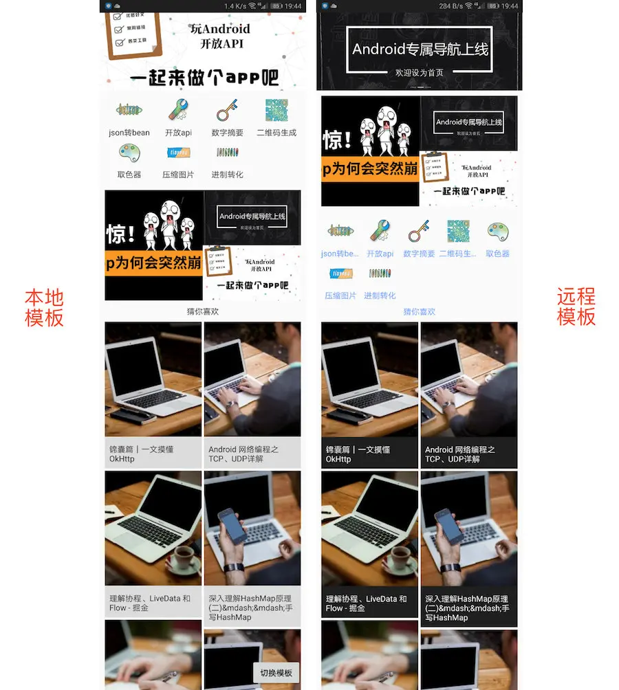 重点看页面结构即可,远程模板调整了Card顺序、4列布局改成5列、改了文本颜色和瀑布流item背景色。