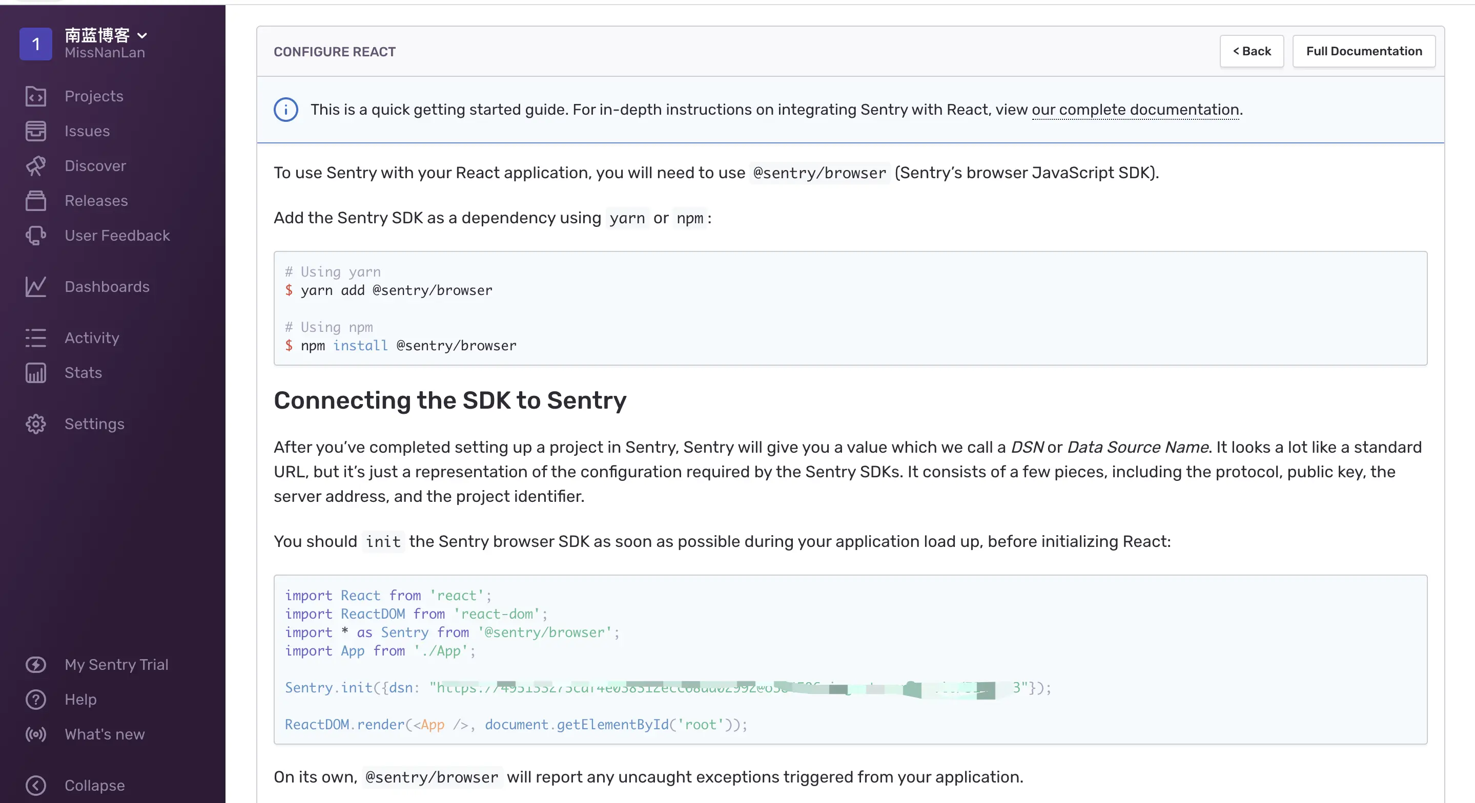 默认是连接到senty.io,如果想要连接自己的输入,则