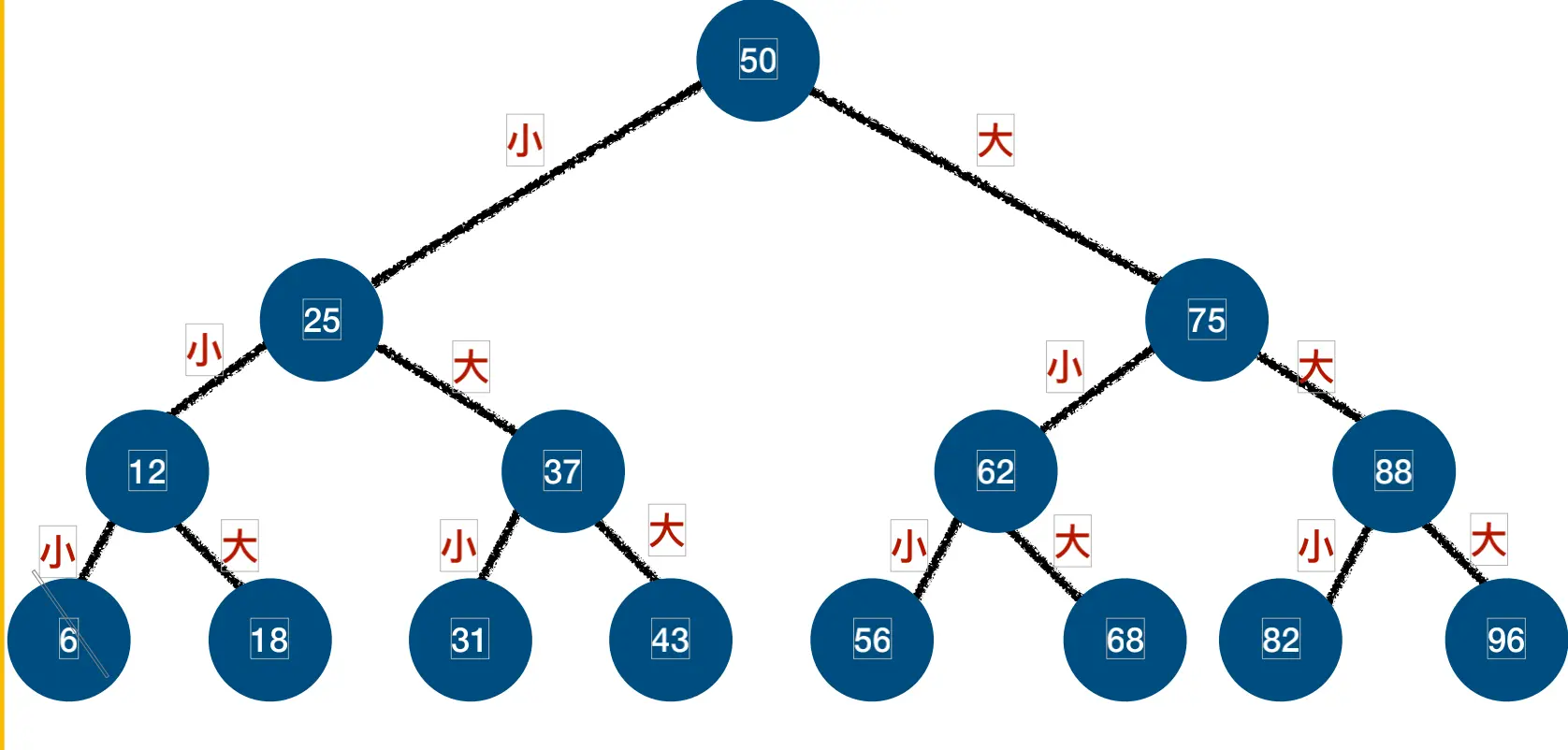- 若给定值⼩于中间的记录关键字,则在中间记录的左半区继续查找;