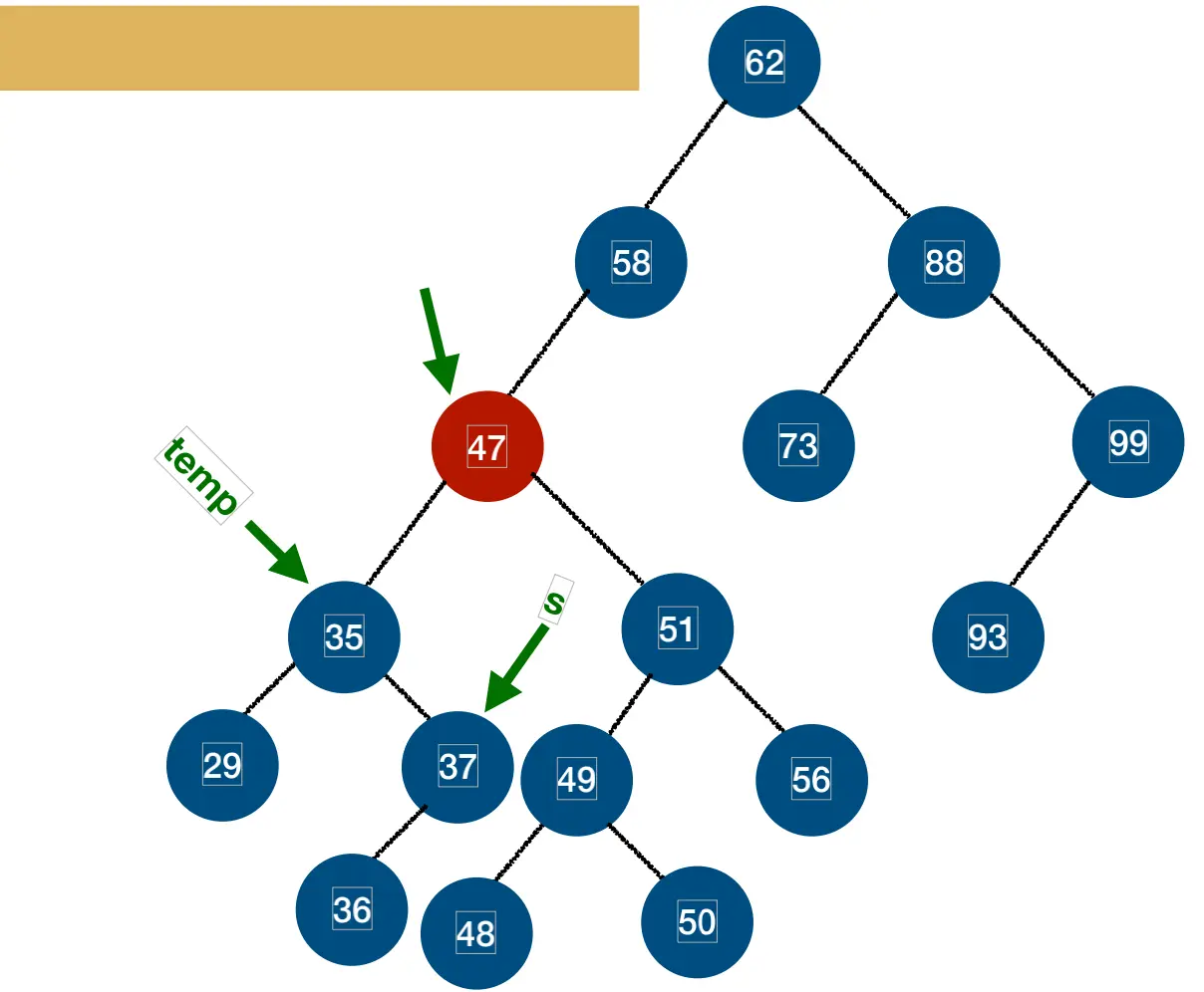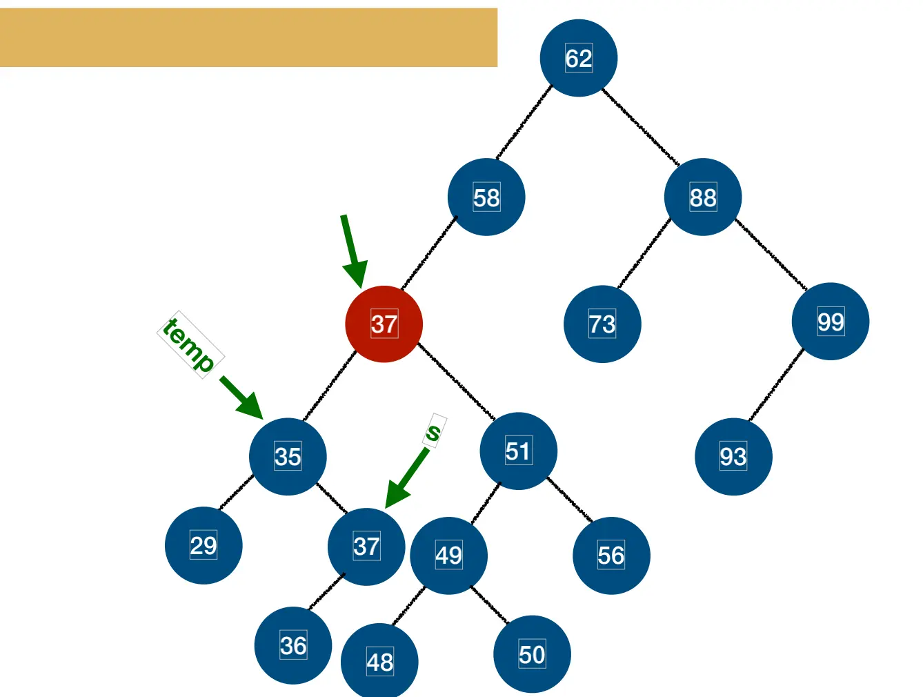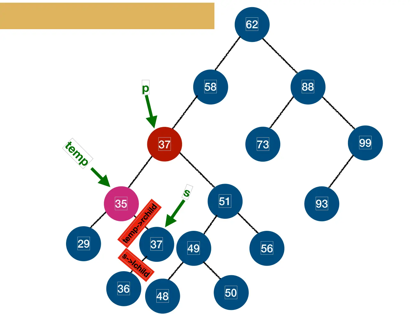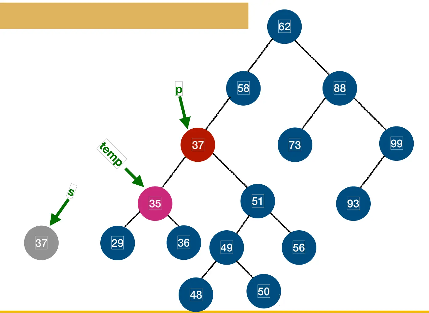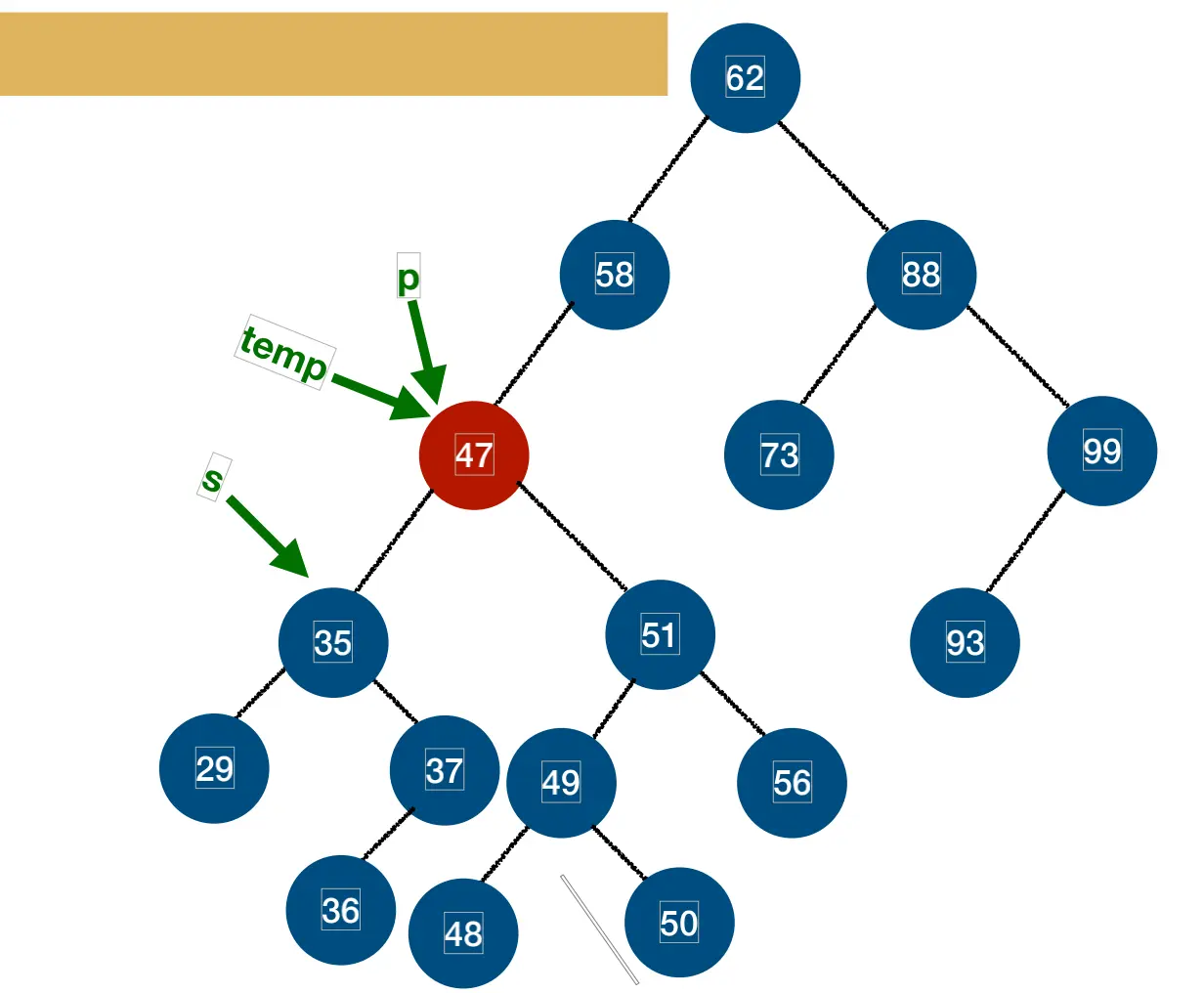 //①将结点p存储到临时变量temp, 并且让结点s指向p的左子树