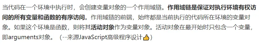 对外部环境的引用,意味着它可以访问其外部词法环境,如果在当前词法环境中找不到变量,则JavaScript引擎可以在外部环境中查找变量。