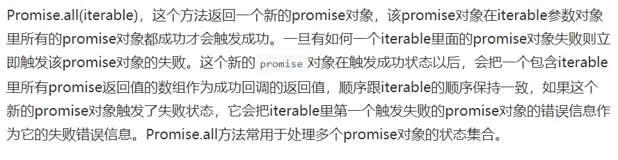 Promise.prototype.then(onFulfilled, onRejected)添加解决和拒绝回调到当前promise,返回一个新的promise,将以回调的返回值来resolve。
