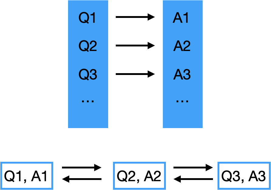 我们先想个场景,在搜索引擎里,你输入问题 Questions,谷歌给你返回答案 Answer。