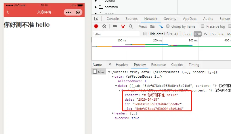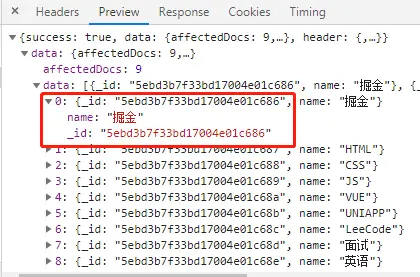 发现请求成功,数据也是我们刚刚上传的,富文本格式也是一样的;属性配置大家使用官网即可