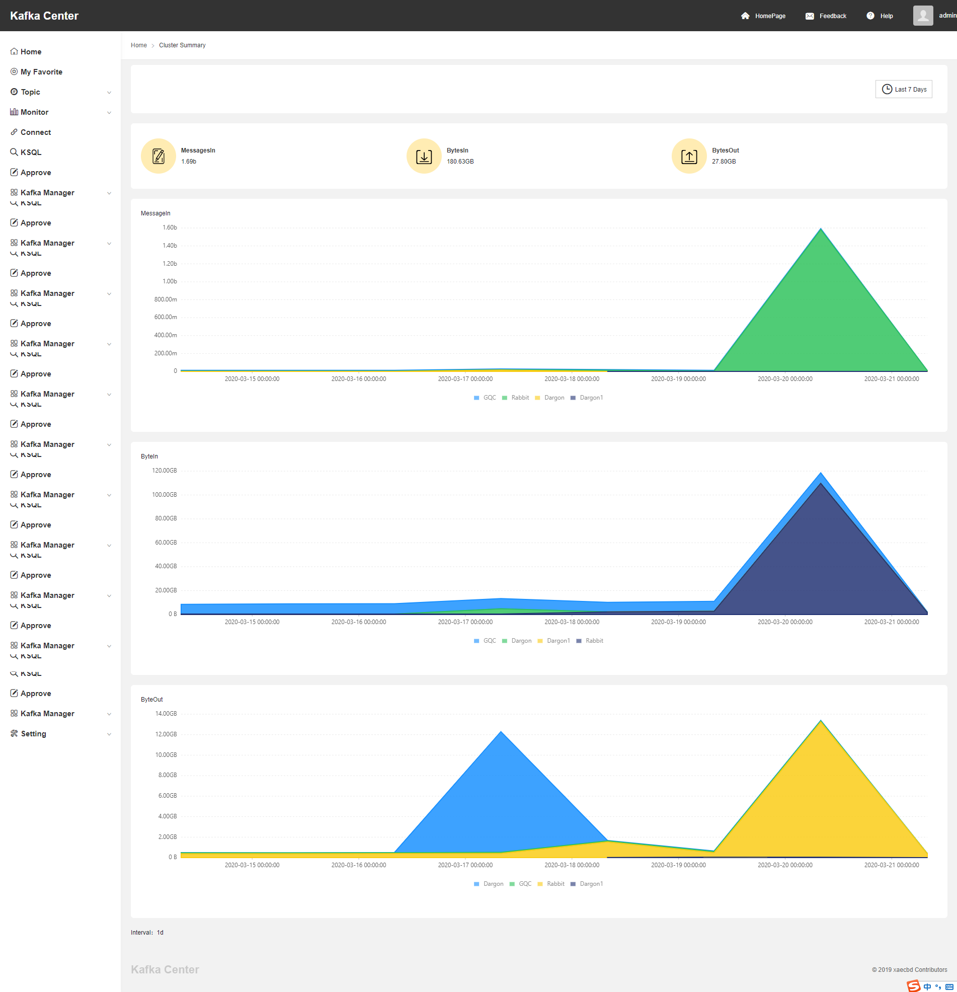 - Home-> 查看平台管理的Kafka Cluster集群信息及监控信息