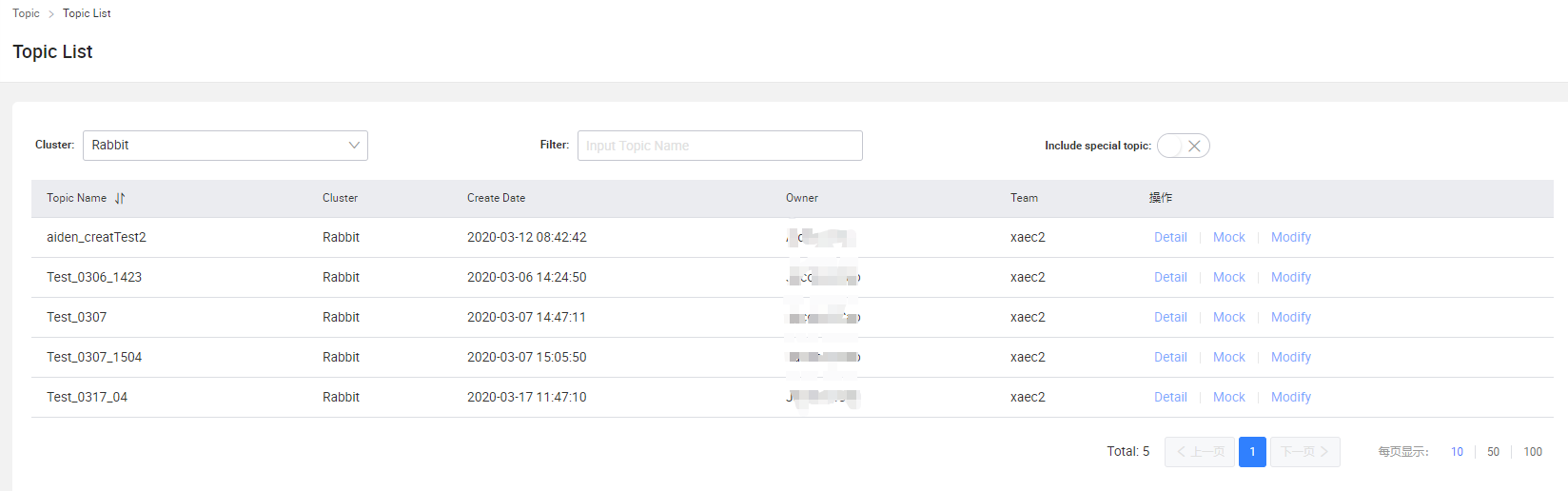 - Topic -> Topic List -> Mock 对Topic进行生产测试