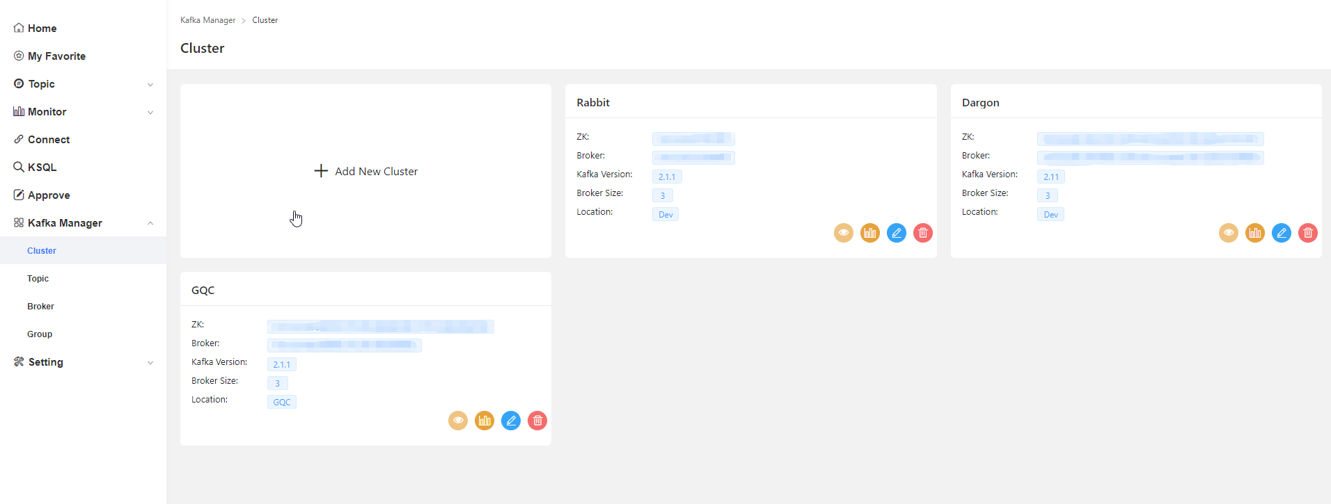 - Kafka Manager-> 此模块用于管理员对集群的正常维护操作。