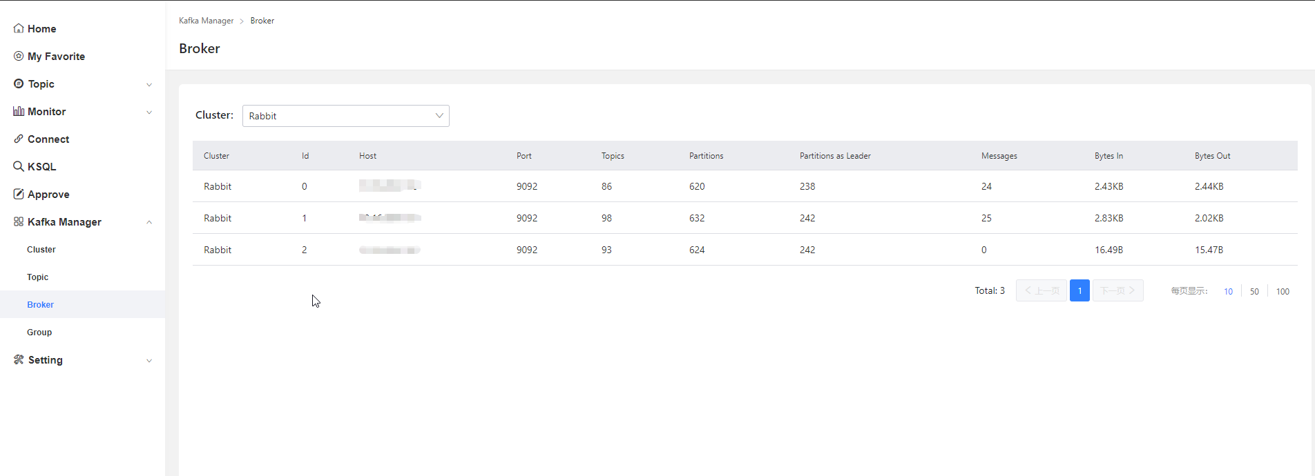 集群与topic列表