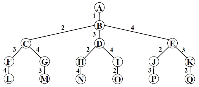 由于只有4个城市,如果规定售货员总是从城市1出发,那么依据排列组合可以得到6种不同的旅行方案,比如12341、13241等等。在这些排列组合基础上可以很容易绘制出一棵排列树,也是该问题的解空间树,排列树如下: