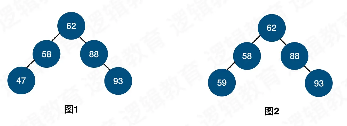 其中图1是平衡二叉树,图2不是平衡二叉树,因为它不是二叉排序树