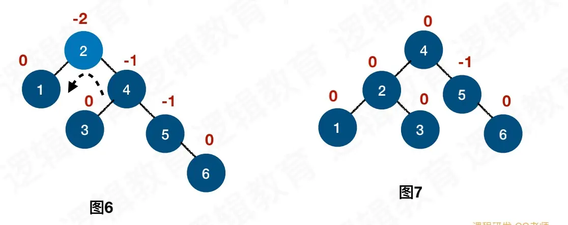 插入6节点,插入6节点导致2节点的BF值为-2,绝对值大于1,所以2节点左旋转