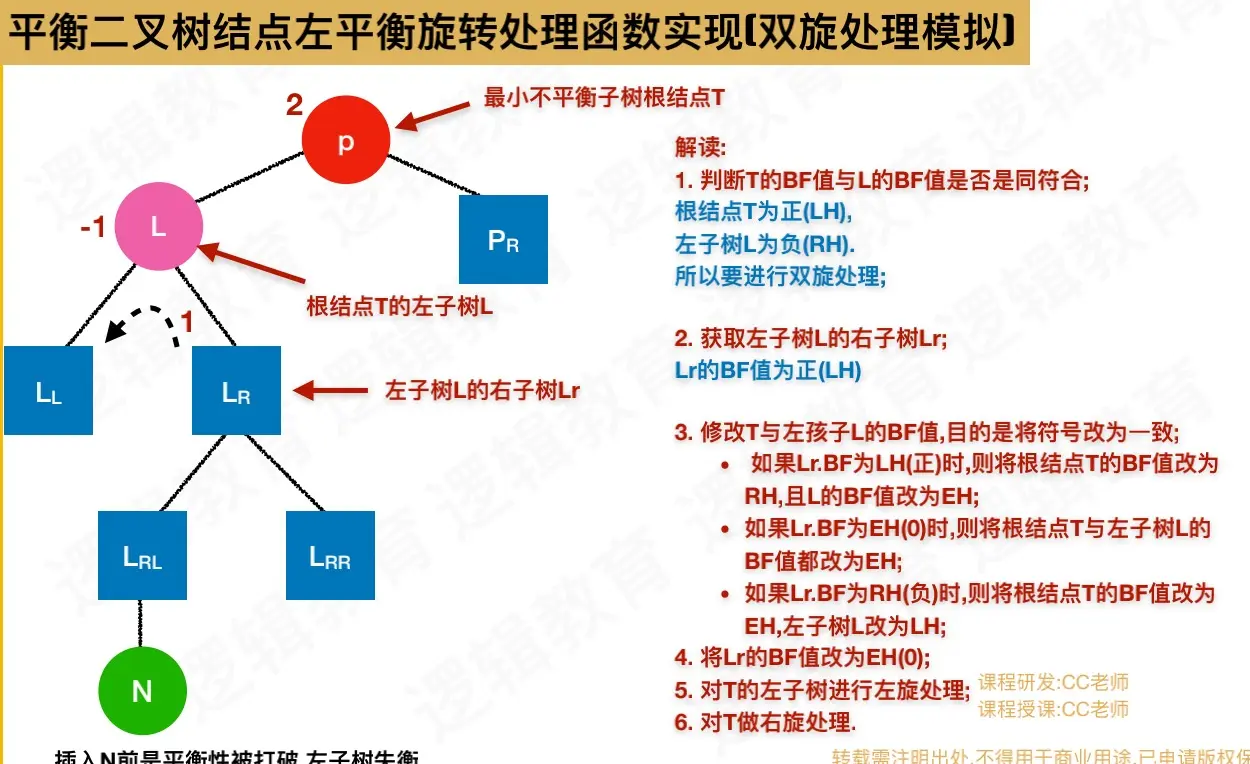 否则造成非二叉排序树,因此我们要先左旋转,统一符号,然后再右旋转