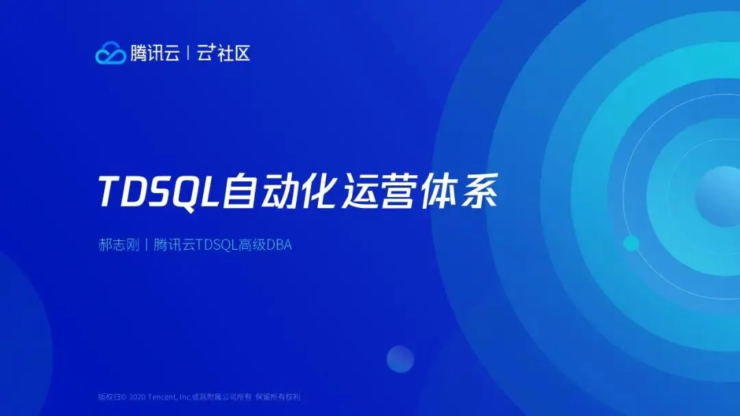 大家好,我是腾讯云TDSQL高级DBA郝志刚。今天分享的主题是TDSQL自动化运营体系。听过我们前面系列课程的同学应该对TDSQL的架构原理等有比较详细的了解。而回到现实的工作中处理各种问题,还是要埋头解决各种运营问题。所以今天我们介绍一下TDSQL的自动化运营体系,看TDSQL自动化运营体系能为广大DBA或者运维人员带来什么。事实上TDSQL自动化运营体系可以帮助DBA的工作更放松一点、轻松一点,而不是想象中比较苦、比较累的工作,希望对大家有帮助。